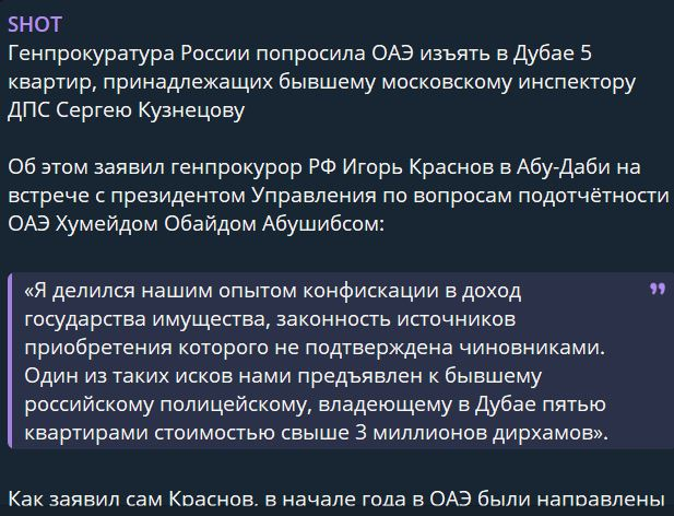 🤓Государство научилось изымать незаконно нажитые средства, выведенные в дубайскую недвижимость. Кажется, этот факт должен существенно сократить число желающих «инвестировать» в этой чудесной стране.