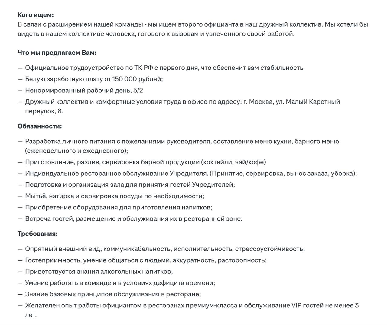 🤓Нашли жирную вакансию в строительстве. «Личный официант учредителя» строительной компании