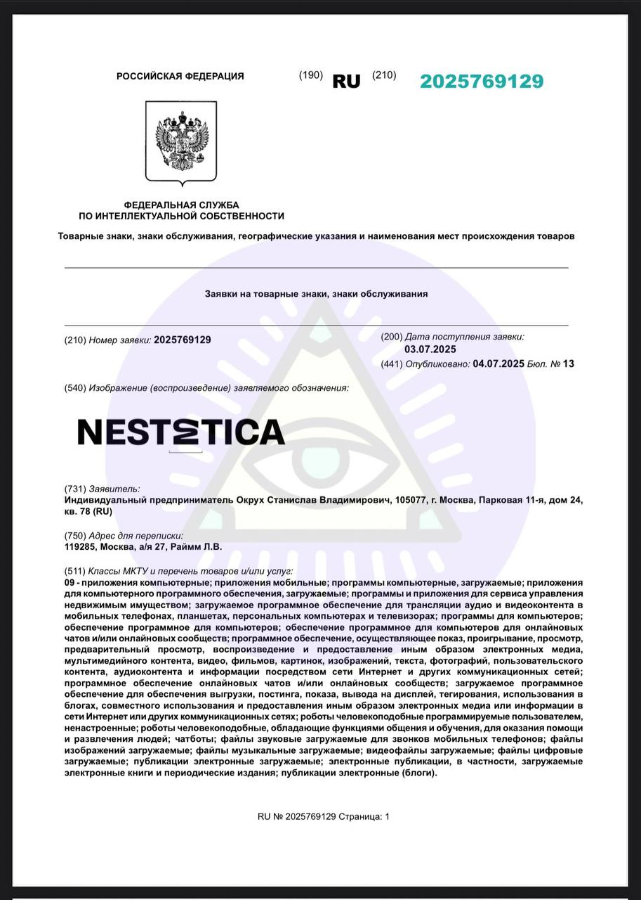 Нестетика. Заявка подана на прошлой неделе в категориях связанных с недвижимостью, консалтингом и it-разработкой.