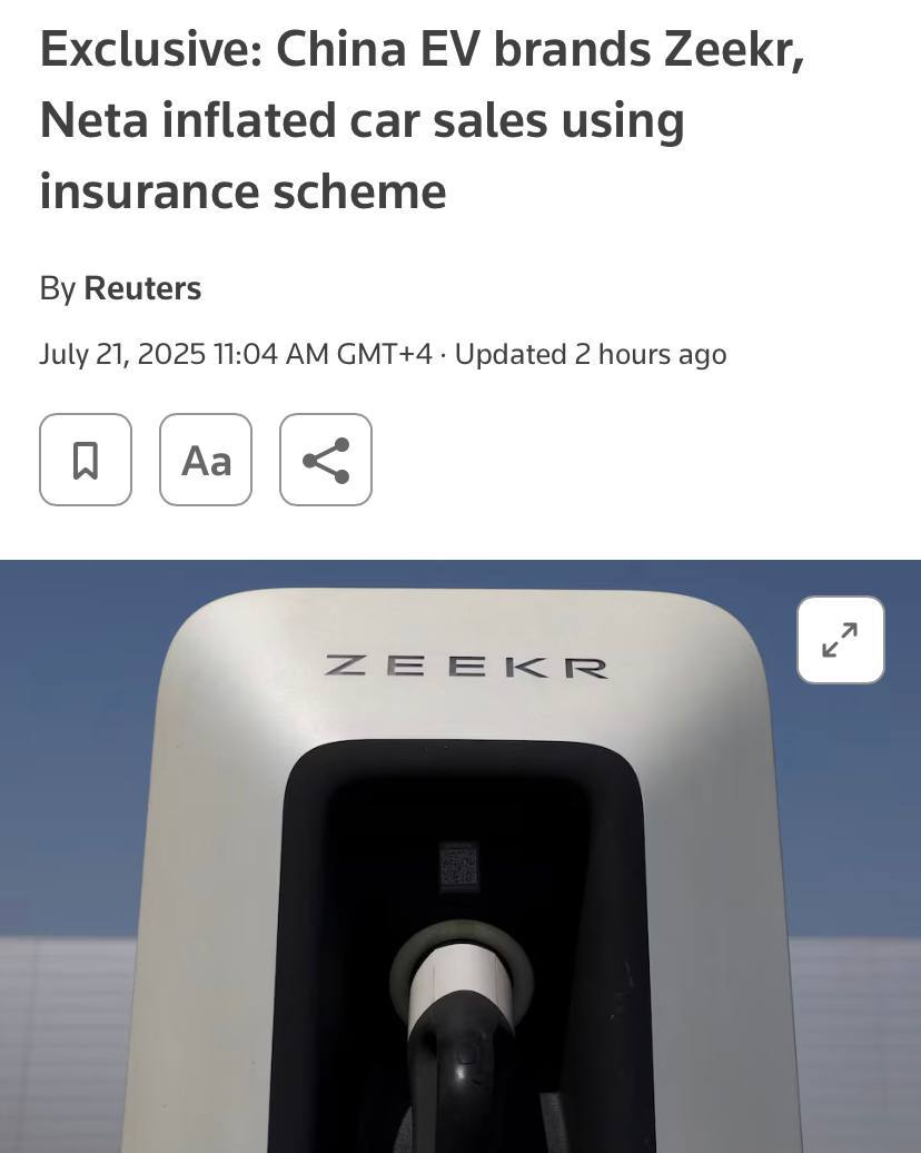 Китайские автопроизводители Zeekr и Neta накручивали продажи, оформляя страховку на машины до того, как находили покупателей.