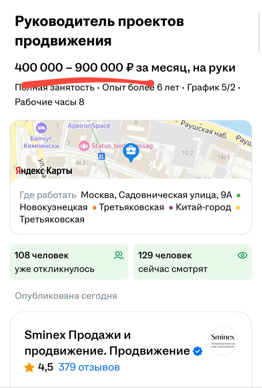 🤯Смайнекс продолжает ломать рынок. Руководитель проектов продвижения — 400-900 тыщ