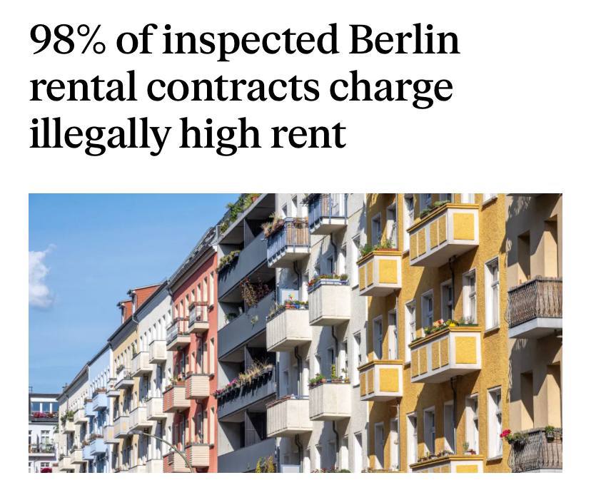 Во втором квартале 2025 года Берлинское управление по контролю за арендной платой (Mietpreisprüfstelle) вывило незаконное повышение арендной платы в 93 из 95 проверенных договоров.