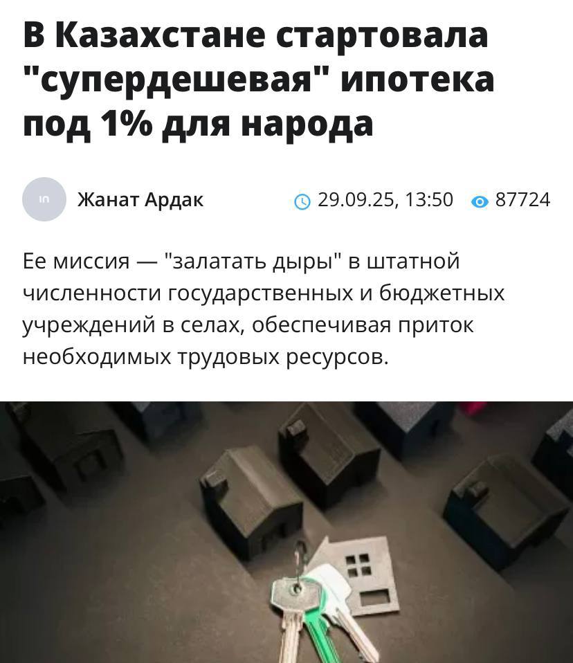 В Казахстане начала действовать программа льготного жилищного кредита под 1% годовых для специалистов, переезжающих работать в села.