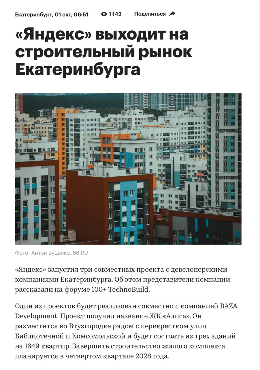 🤔Почему эта новость кажется нам дутой и недосказанной? Почему в заметке РБК есть прямые цитаты представителей застройщика, но нет прямых цитат Яндекса? Есть вероятность, что сейчас Яндекс-PR читает эту заметку с выпученными глазами и думает: опровергать или комментировать?