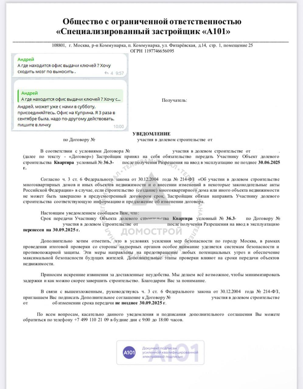 Вот, например, дольщики А101, который