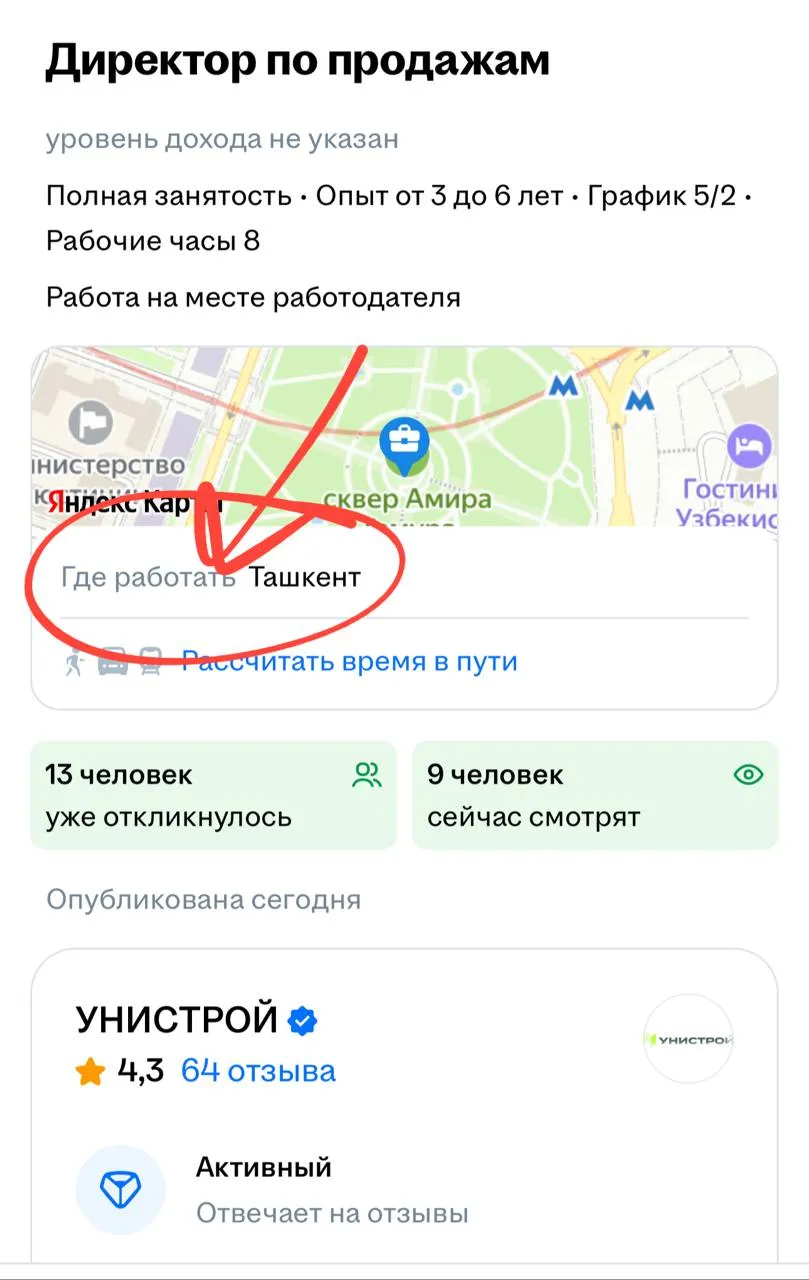 🤓Казанский застройщик Унистрой задумал выход в Узбекистан. Поэтому ищет директора по продажам для работы в Ташкенте. Для кого-то из москвичей это мог бы быть неплохой апгрейд карьеры, тем более что на столичном рынке, как бы, продавать уже некому…