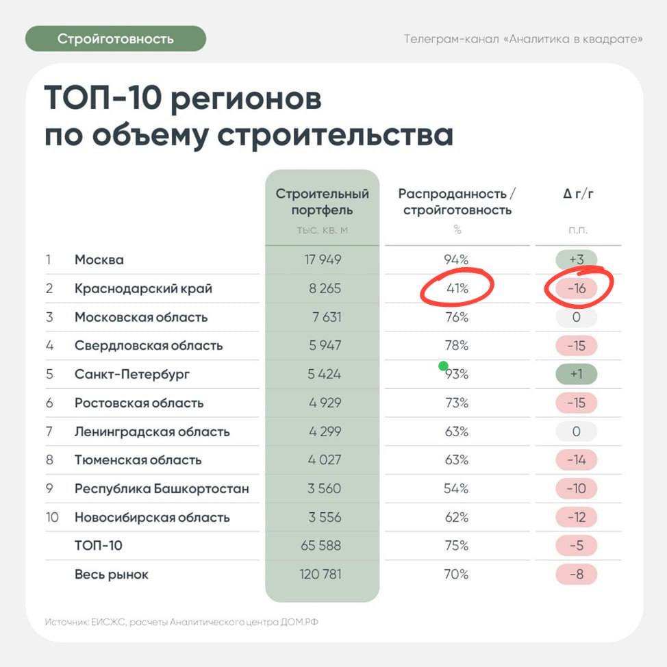 🤓Внимание на Краснодарский край. Кто строит больше, чем нужно? Где раздался пузырь в жилом строительстве?