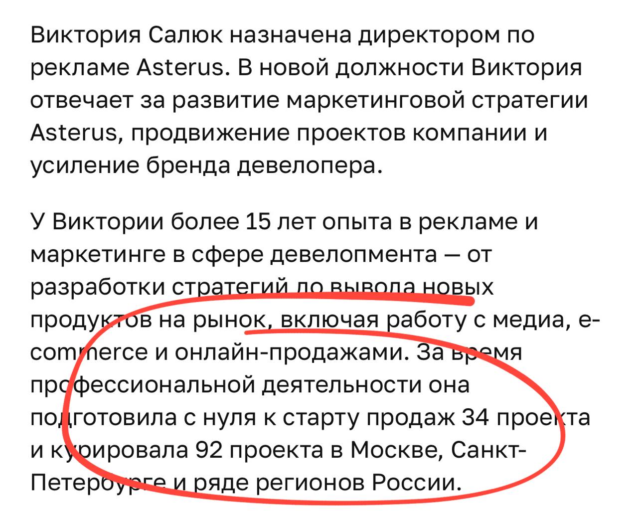 За время профессиональной деятельности она подготовила с нуля к старту продаж 34 проекта и курировала 92 проекта…