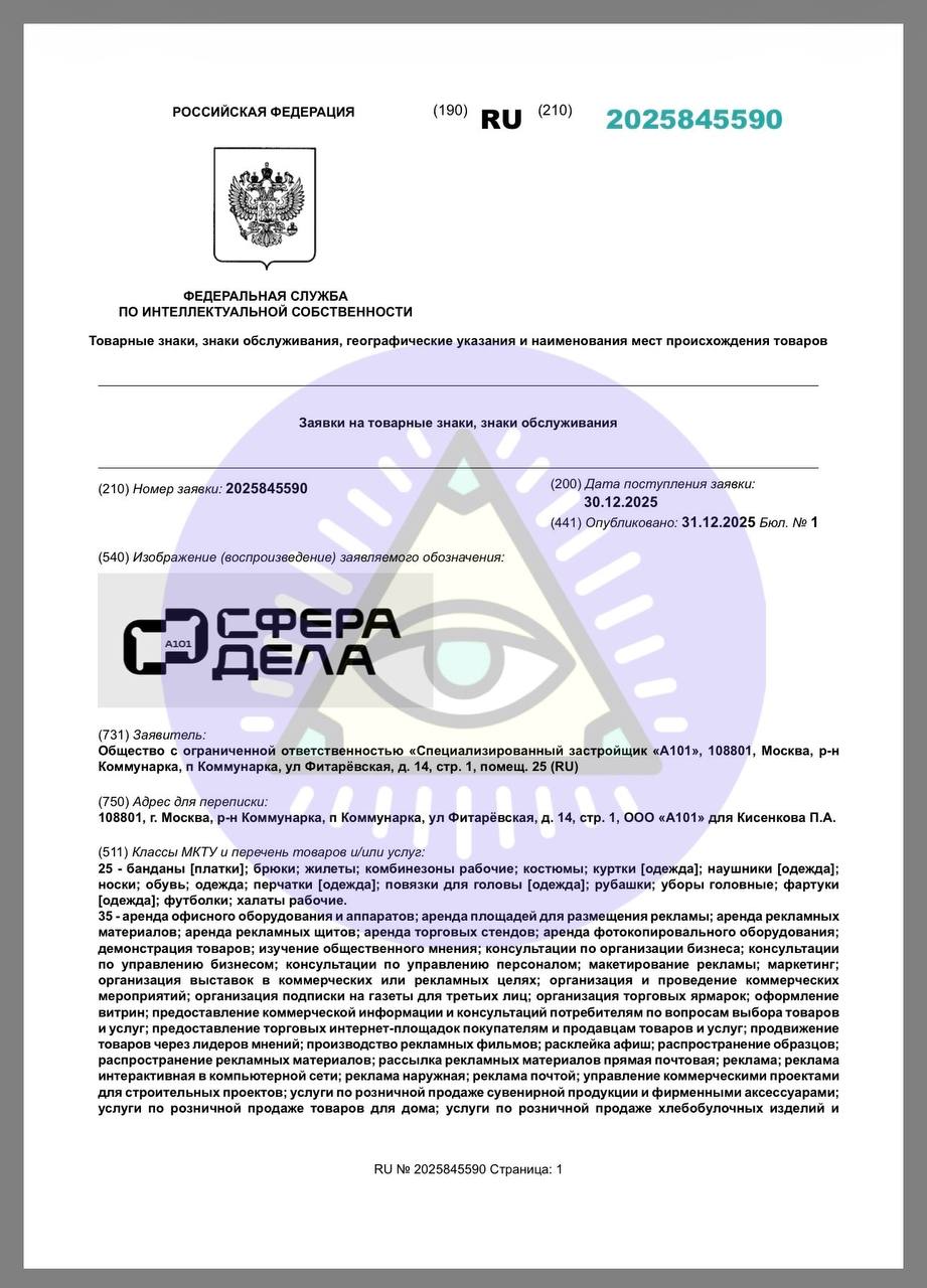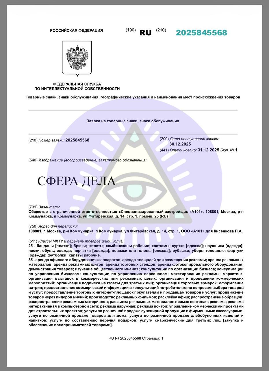 В числе классов, в которых застройщик намерен использовать название и логотип «Сфера дела»: торговля хлебобулочными изделиями, герметизация сооружений, дезодорирование обивки, физическое воспитание, аренда стульев и прочие чудеса.