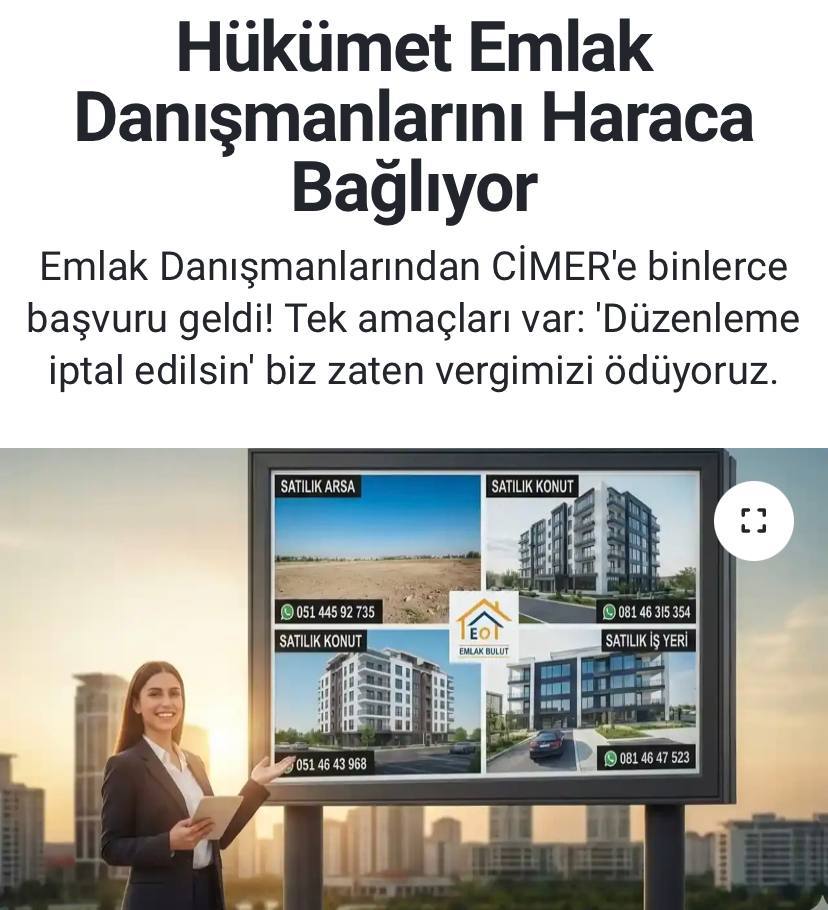 По этой причине десятки тысяч риелторов подали жалобы через CİMER, требуя отменить или пересмотреть меру, заявляя, что они уже платят налоги и несут высокие расходы на рекламу, обучение и ведение бизнеса.