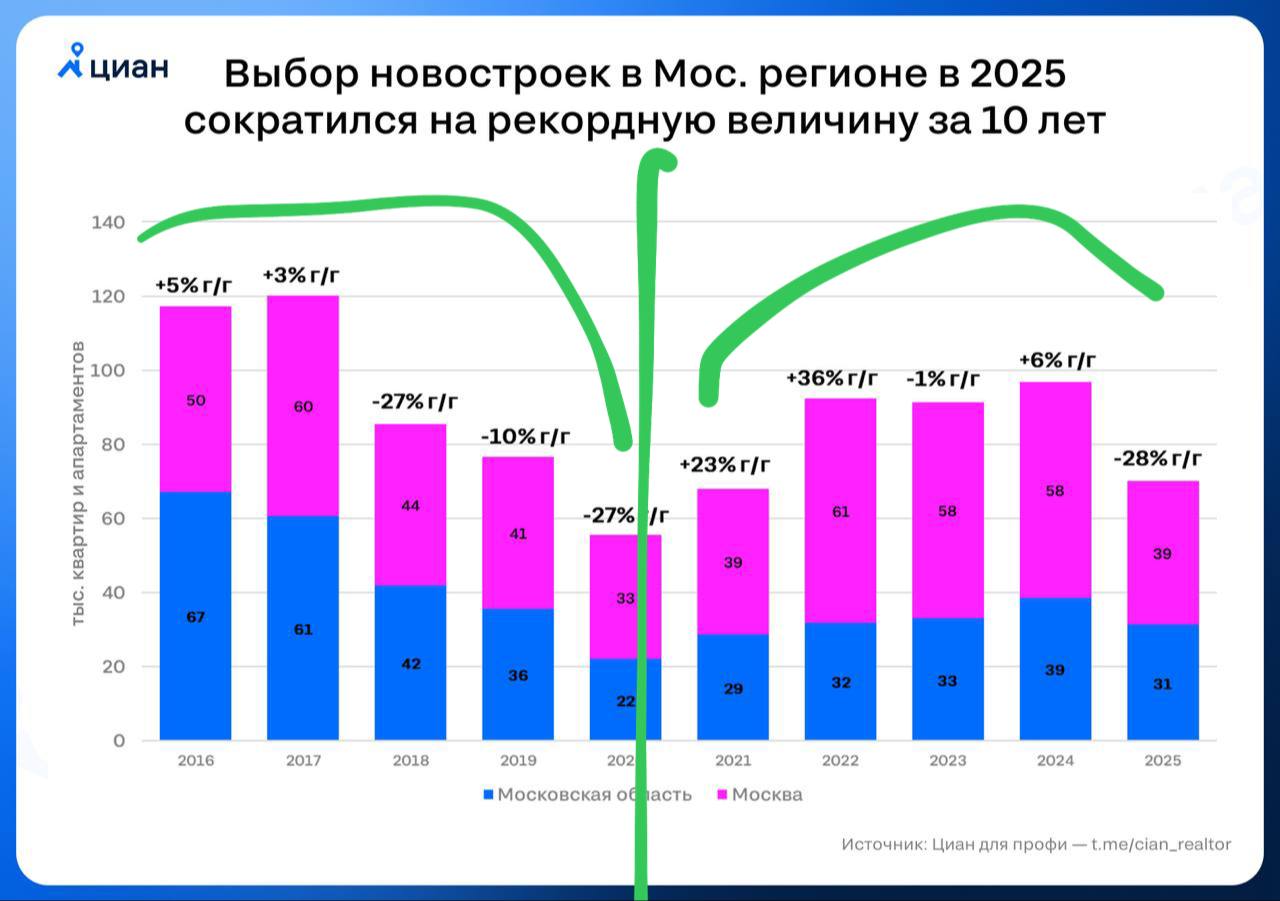 🤔Мы же понимаем, что это два разных «выбора»? Основная масса конца десятых это рациональный эконом и комфорт по разумным ценам. Где-то уже прослеживается тенденция «комфорт плюс» и «бизнес лайт». Строят, кстати, в хороших районах, часто у метро.
