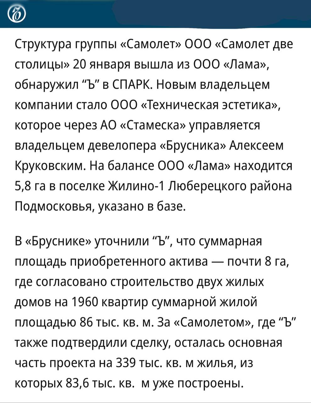 🤓Самолет продал Бруснике надел земли под стройку. В Люберецком районе