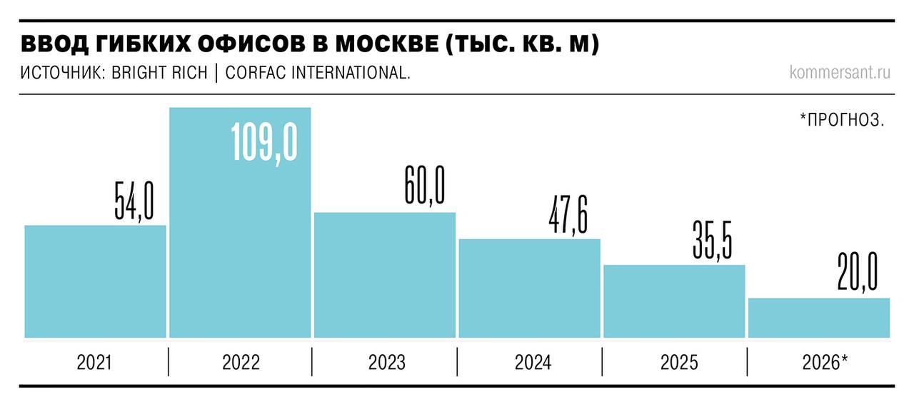 За 2025 год совокупный объем их ввода снизился на 25%, а в 2026 году снижение может составить еще 44%. Новых проектов на 2027 год операторы не заявляют. Это связано с дефицитом качественных площадок и пошатнувшейся экономикой проектов. Места в коворкингах подорожали более чем на 30% за год, и интерес бизнеса к ним резко снизился.