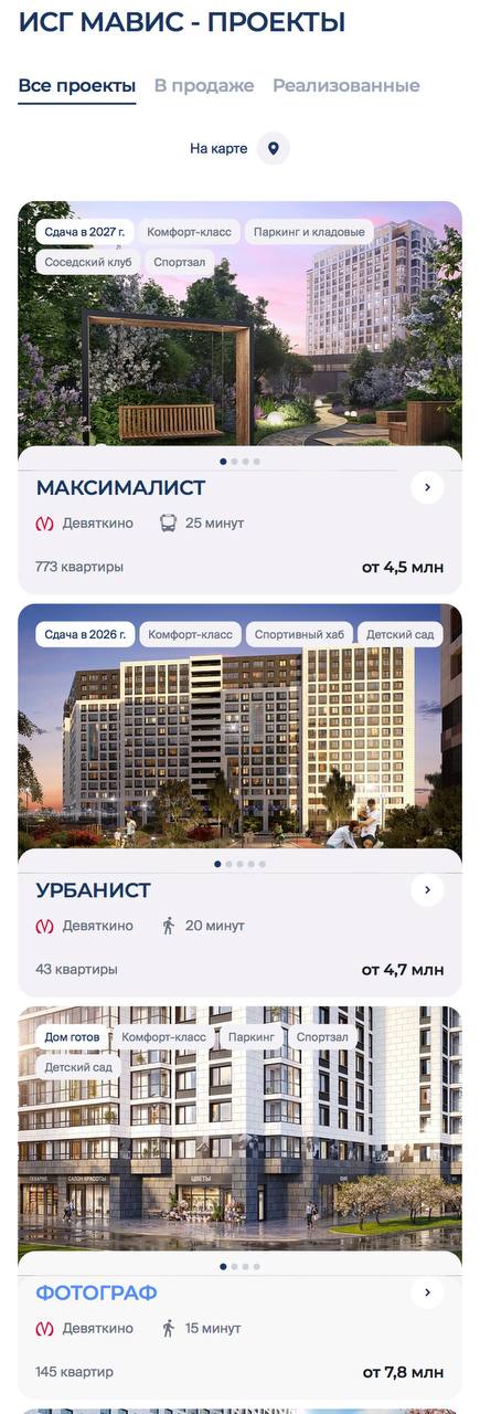 Мавис последовательно называет свои объекты профессиями и занятиями. У него уже есть ЖК: «Урбанист», «Фотограф», «Максималмст». На подходе: «Драмарург» и «Символист».