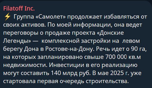 🤔Перераспределение непрофильных активов между девелоперами столичного региона… Проблема в том, что ни одни ни другие не знают как продавать региональные проекты.