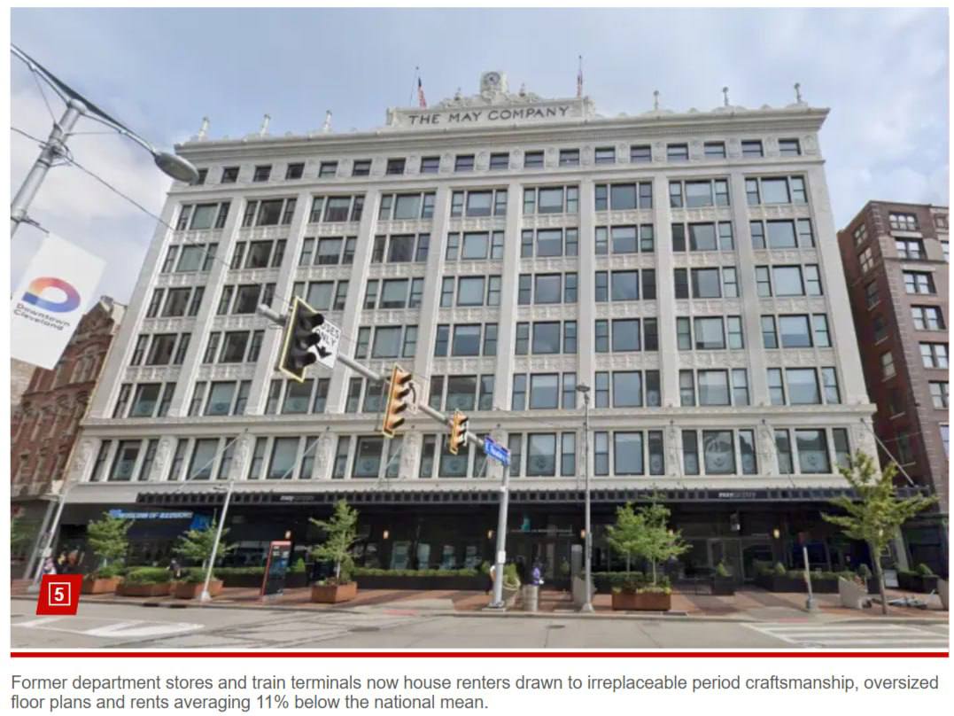 В городе Кливленд (США, штат Огайо) заброшенные универмаги и старые здания активно переделывают в жильё, что помогает росту населения центра города, включая приток поколения Z.