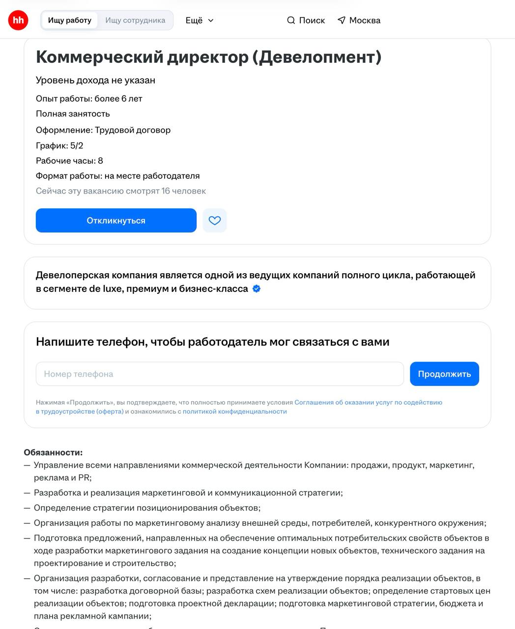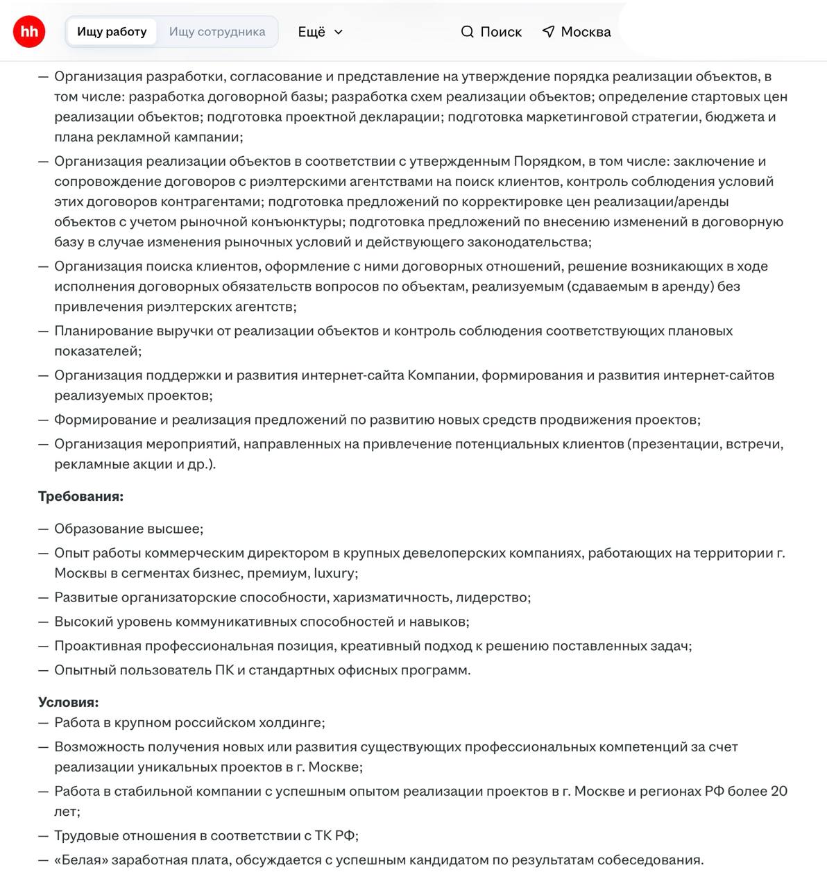 Это, конечно, если верить анонимному описанию работодателя «Девелоперская компания является одной из ведущих компаний полного цикла, работающей в сегменте de luxe, премиум и бизнес‑класса».