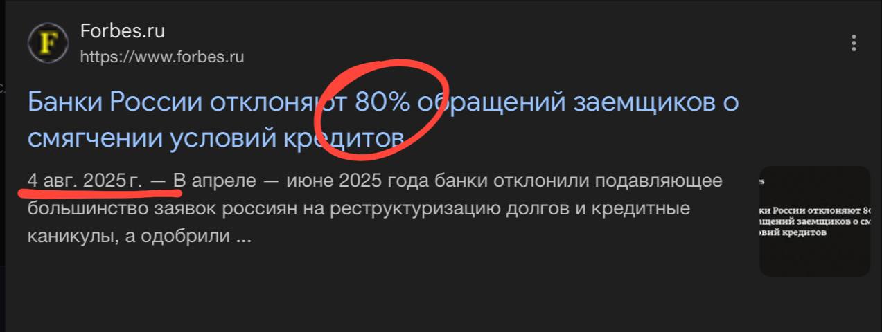 😂Год от года ничего не меняется. Обратите внимание, заголовок «Российские банки отклоняют 80% заявок на кредиты» гуляет по СМИ с 2025 года.